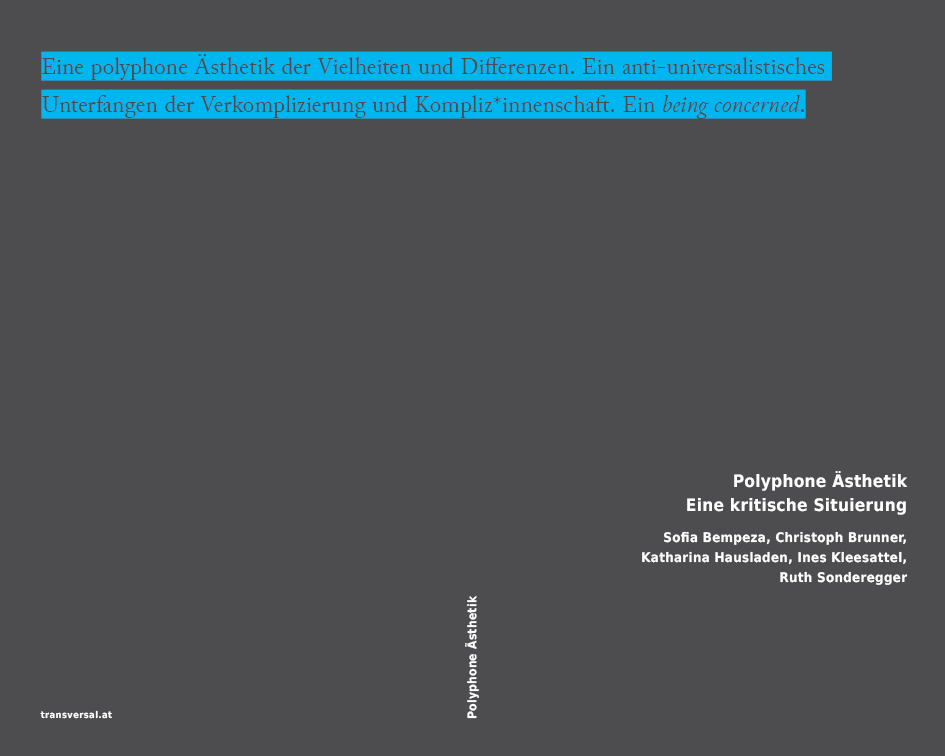 Eine polyphone Ästhetik erwächst aus der Dringlichkeit und der Freude, mit verschiedenen Stimmen zu arbeiten und durch heterogene Positionen zu denken, ohne die Differenzen, die der Polyphonie immanent sind, zu neutralisieren. In diesem Sinne möchte das vorliegende Buch den selbstgerechten Autoritätsanspruch der westlichen Ästhetik unterwandern und produktiv verunsichern. Zugleich folgt es dem Begehren nach kollektiven Formen des sinnesbezogenen Denkens und Arbeitens.